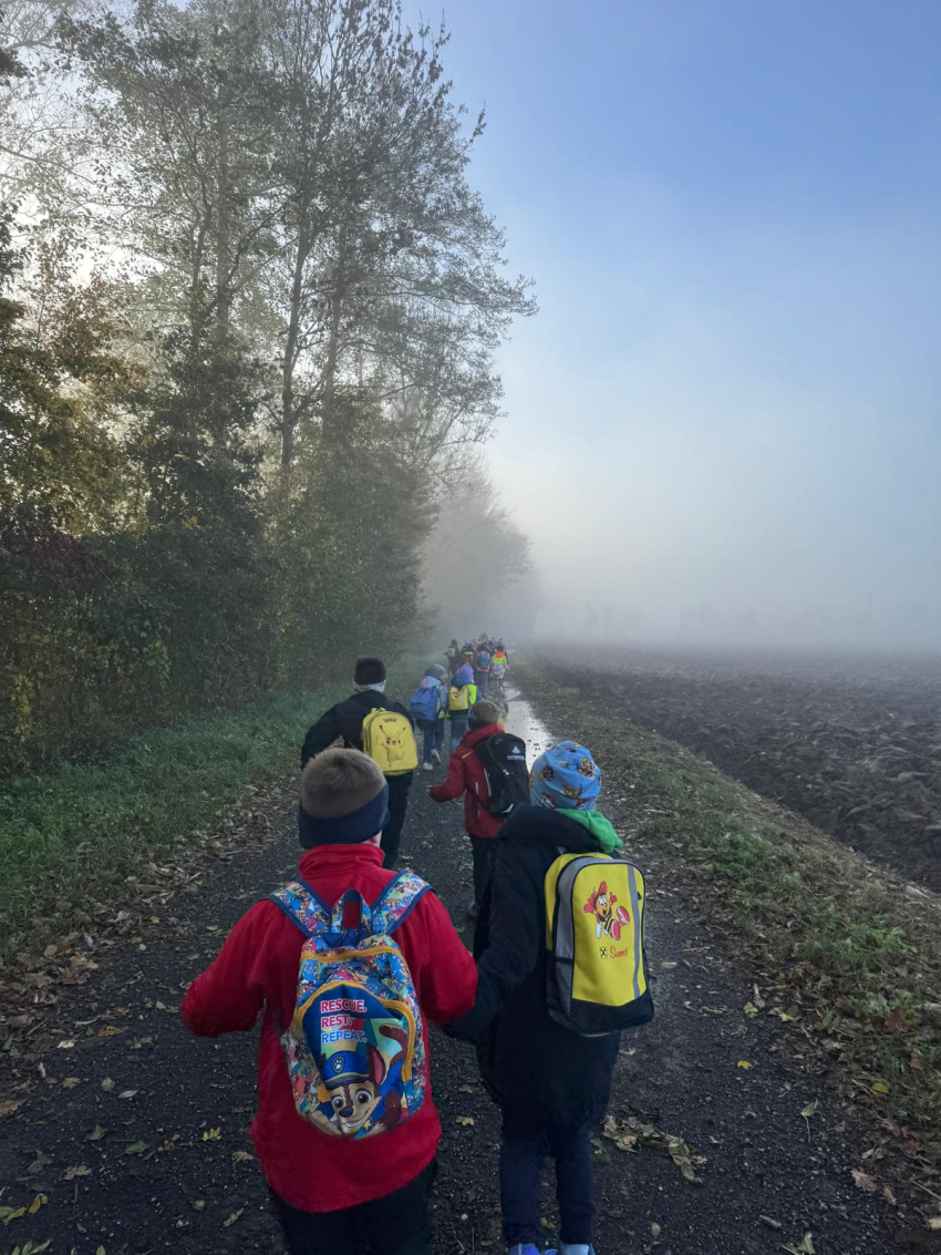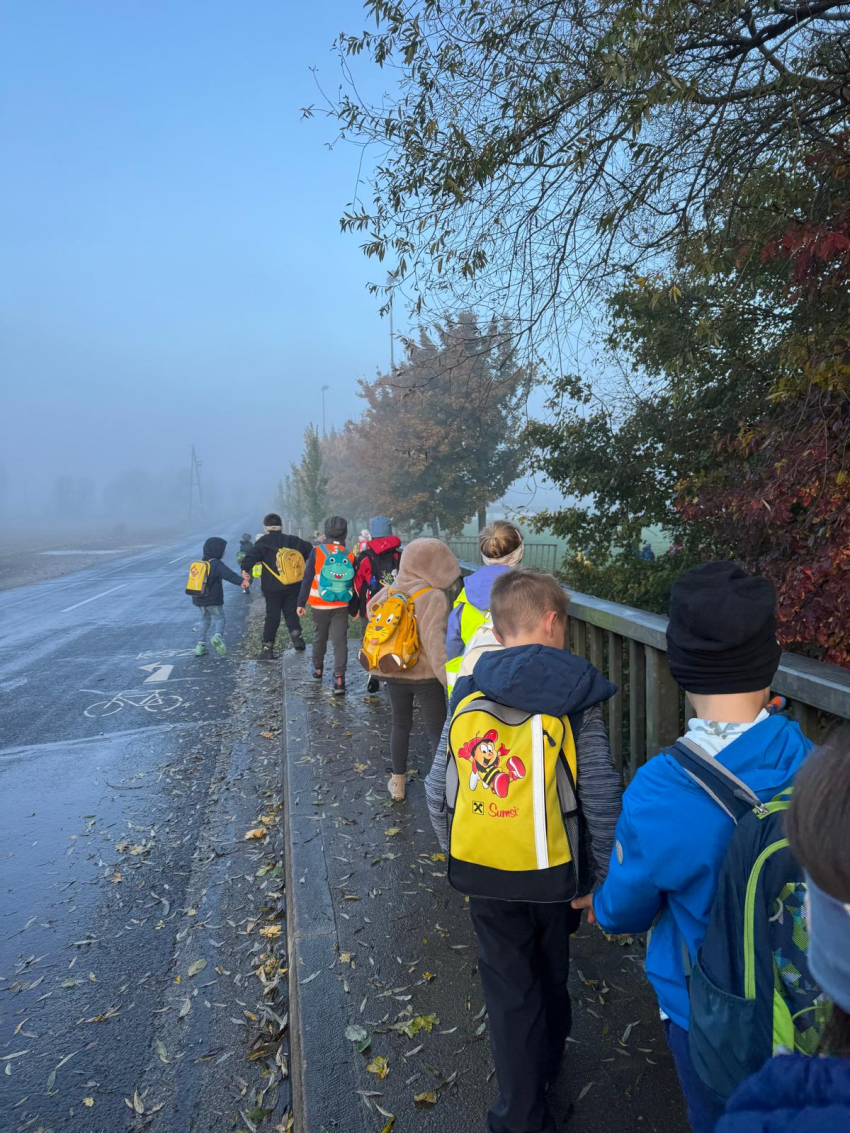 An einem kühlen, aber sonnigen Herbstmorgen machten sich unsere ersten Klassen gut eingepackt und voller Vorfreude auf ihren ersten gemeinsamen Wandertag. Die frische Luft, das Rascheln der bunten Blätter und die klare Herbststimmung begleiteten uns auf unserem Weg.