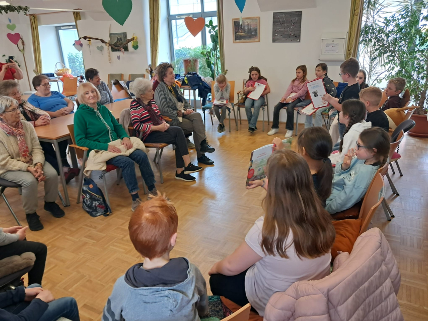 mehr BilderMit einer entzückenden Freundschaftsgeschichte über den Schmetterling FRIDOLIN 🦋besuchten die Kinder der 2.c am 16. APRIL 2026 die junggebliebenen Bewohner des Betreuten Wohnen in Gnas.