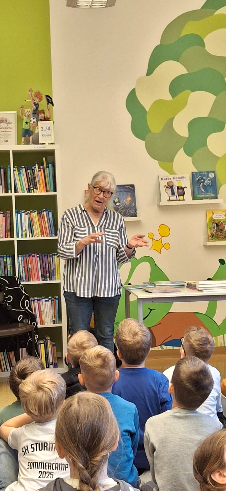 Sie verstand es, die Kinder zu berühren, zu motivieren und in ihre Geschichten einzubauen, sodass es eine kurzweilige fröhliche Vorlesestunde war.