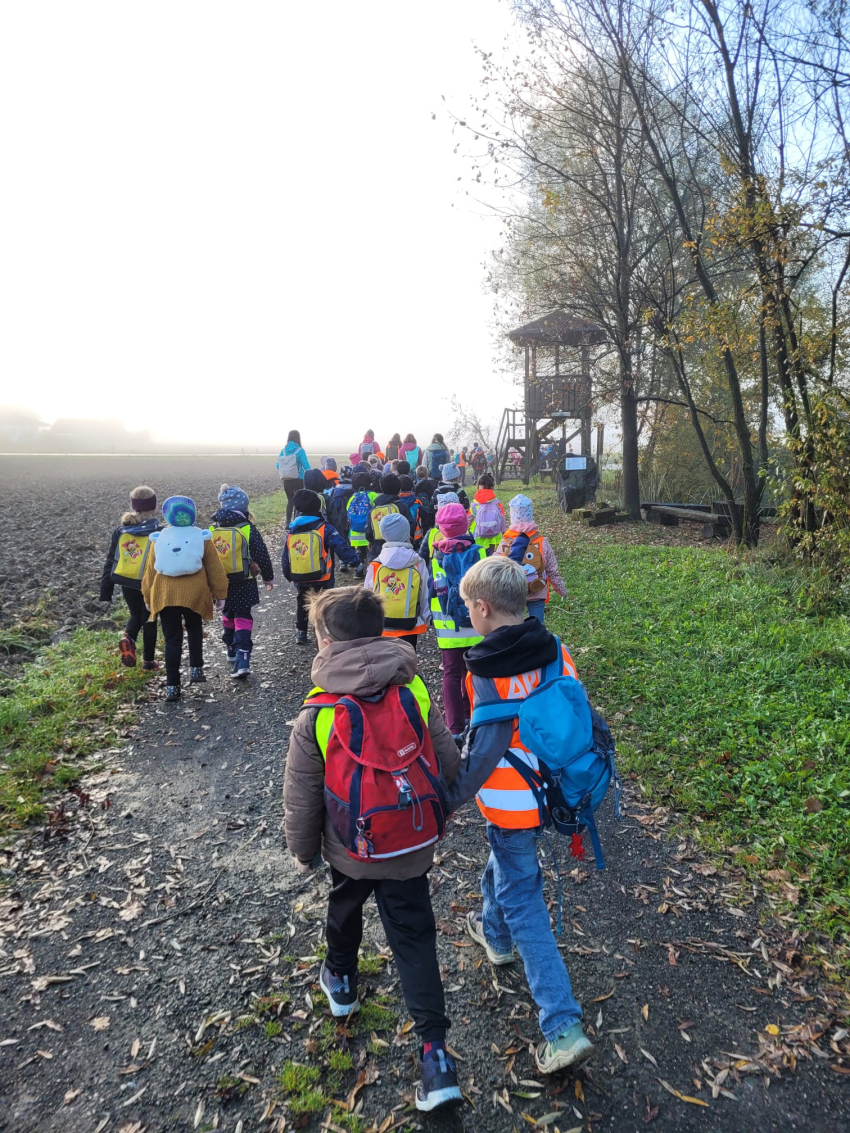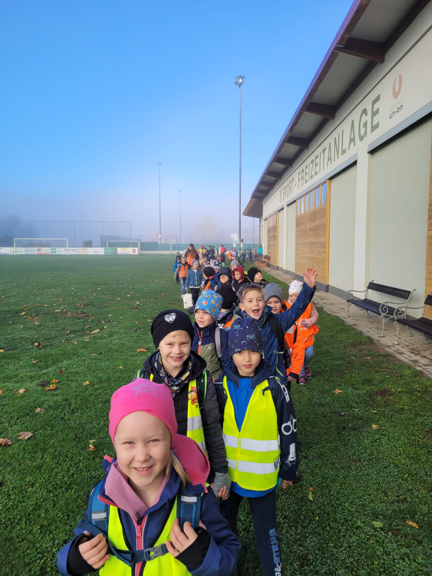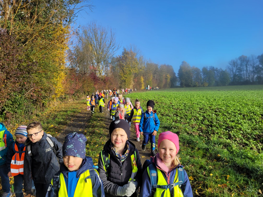 An einem kühlen, aber sonnigen Herbstmorgen machten sich unsere ersten Klassen gut eingepackt und voller Vorfreude auf ihren ersten gemeinsamen Wandertag. Die frische Luft, das Rascheln der bunten Blätter und die klare Herbststimmung begleiteten uns auf unserem Weg.
