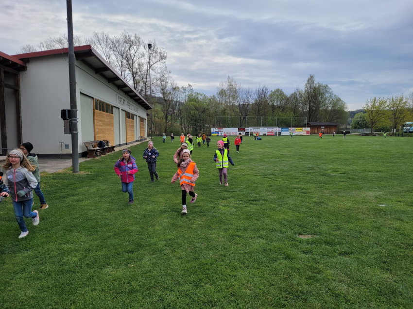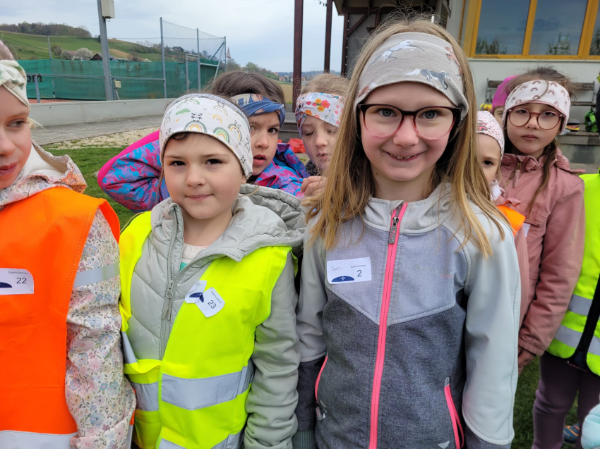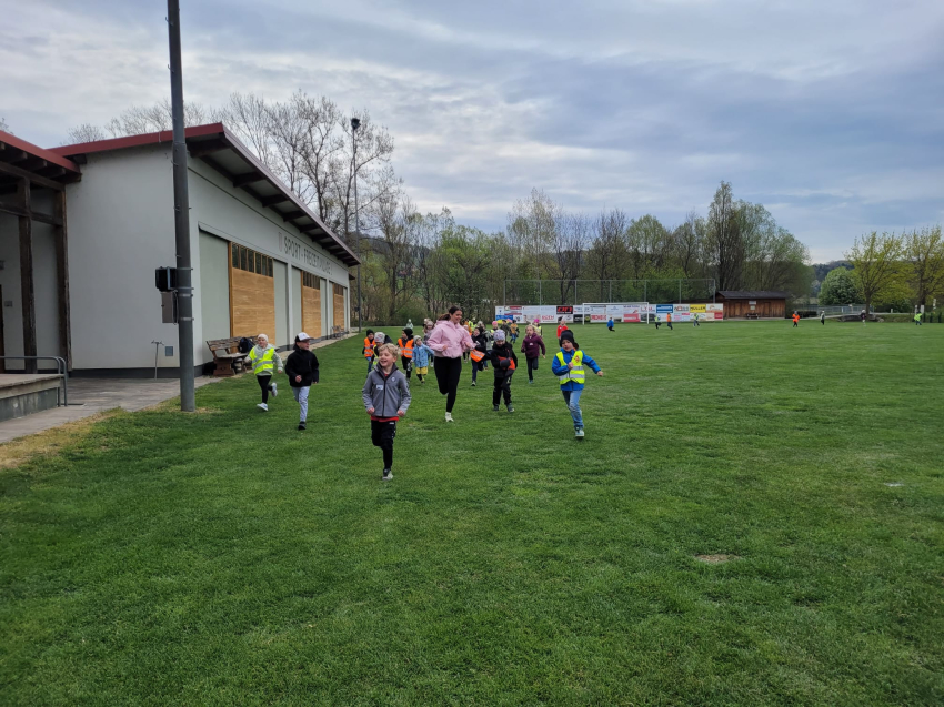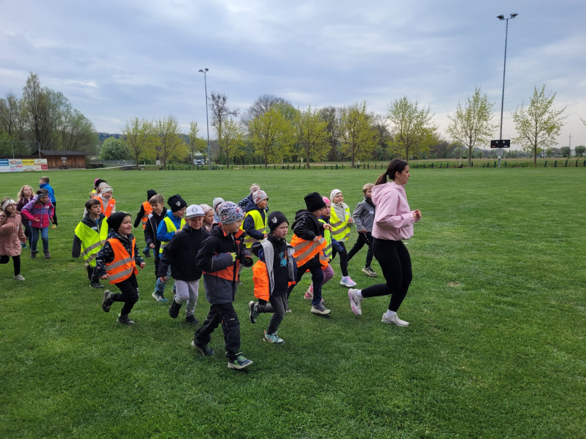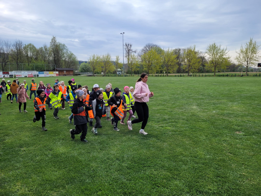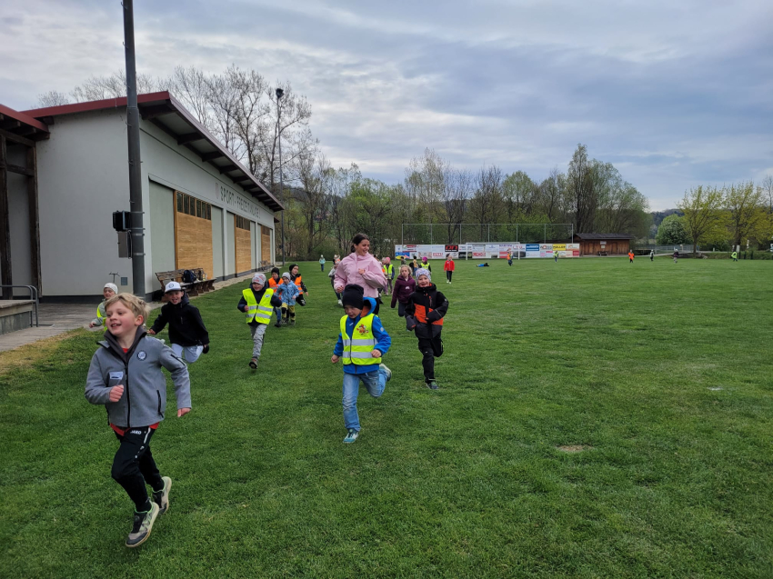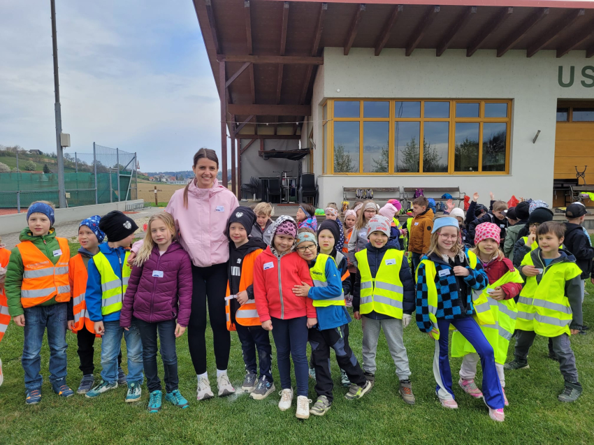 Die Schülerinnen und Schüler der dritten Klassen der Volksschule Gnas sammelten am 9.4. am Kunstrasen-Fußballplatz Meter für Meter und schafften dabei viele Runden.
